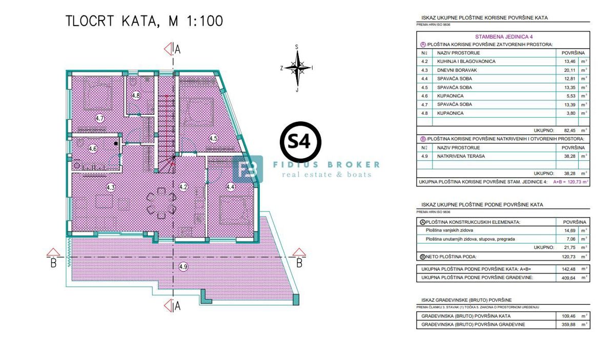 VODICE - Modern 3-bedroom apartment for sale with sea view, 600 m from the sea and 900 m from the city center! A modern project of a new smaller residential building with a total of 4 apartments. The modern-looking residential building will consist of th